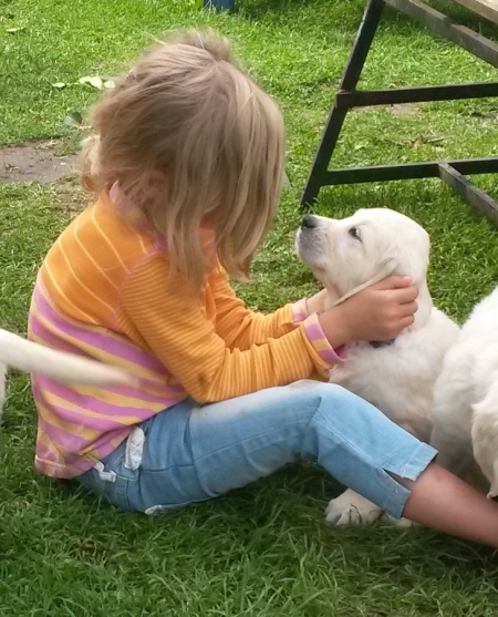Ein ganz wichtiger Faktor in der Sozialisierung der Welpen ist der Kontakt zu Menschen. Wir laden viele nette Leute ein - Kinder, Jugendliche und Erwachsene, damit die Carlitinchen von Anfang an ohne Scheu auf alle Menschen zugehen.