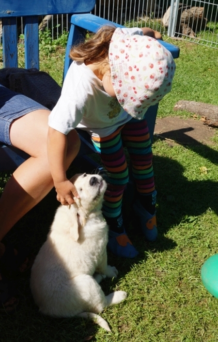 Ein ganz wichtiger Faktor in der Sozialisierung der Welpen ist der Kontakt zu Menschen. Wir laden viele nette Leute ein - Kinder, Jugendliche und Erwachsene, damit die Carlitinchen von Anfang an ohne Scheu auf alle Menschen zugehen.