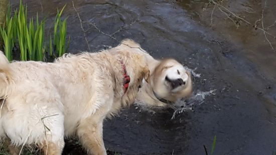 Allegra apportiert aus dem Wasser
